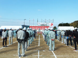 11月3日文化の日に学校法人三木学園 白陵高等学校・白陵中学校様のグランドにおいて3年ぶりとなる安全衛生大会を挙行いたしました