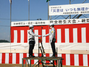 安全大会は社員、協力会社の安全表彰や安全標語募集及びその表彰(応募総数400以上)を行います