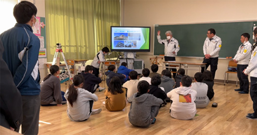 1月31日、坊勢小学校にて、5年生と6年生を対象に「建設業」についての出前授業を実施しました。