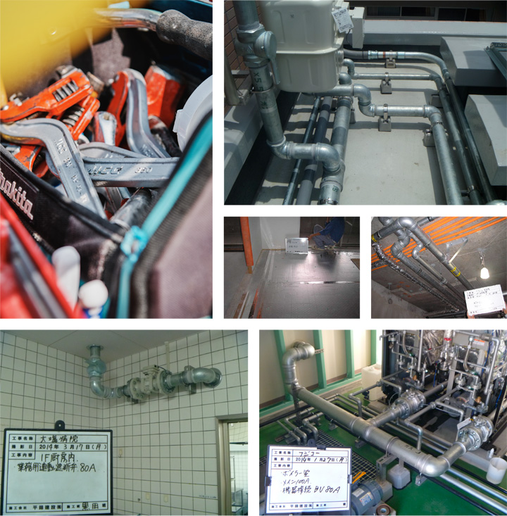 内管工事 各家庭や事業所など需要家の敷地内、建物内のガス設備配管工事を内管工事といいます。ポリエチレン管、外面加工したポリエチレン鋼管、塩ビライニング鋼管、亜鉛メッキ鋼管、ステンレスフレキシブル管工法で施工します。